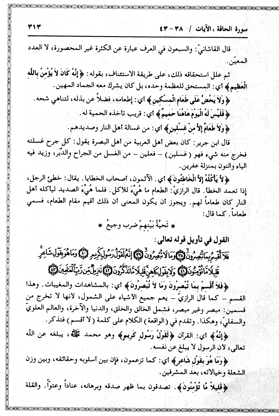 القول في تأويل قوله تعالى: [سورة الحاقة (69) : الآيات 38 الى 43]
