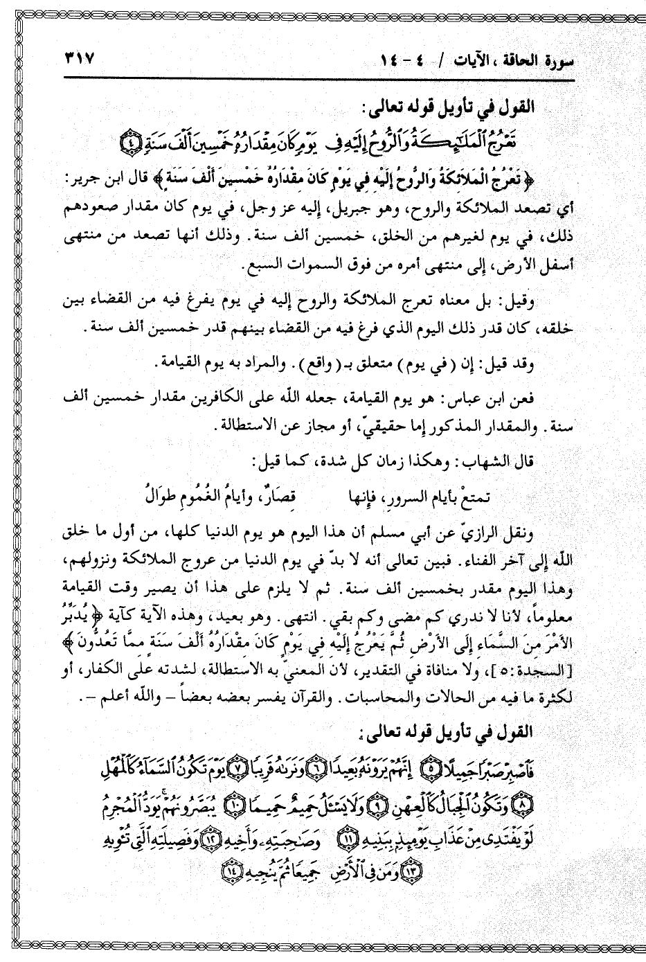 تَعْرُجُ الْمَلائِكَةُ وَالرُّوحُ إِلَيْهِ فِي يَوْمٍ كانَ مِقْدارُهُ خَمْسِينَ أَلْفَ سَنَةٍ قال ابن جرير: