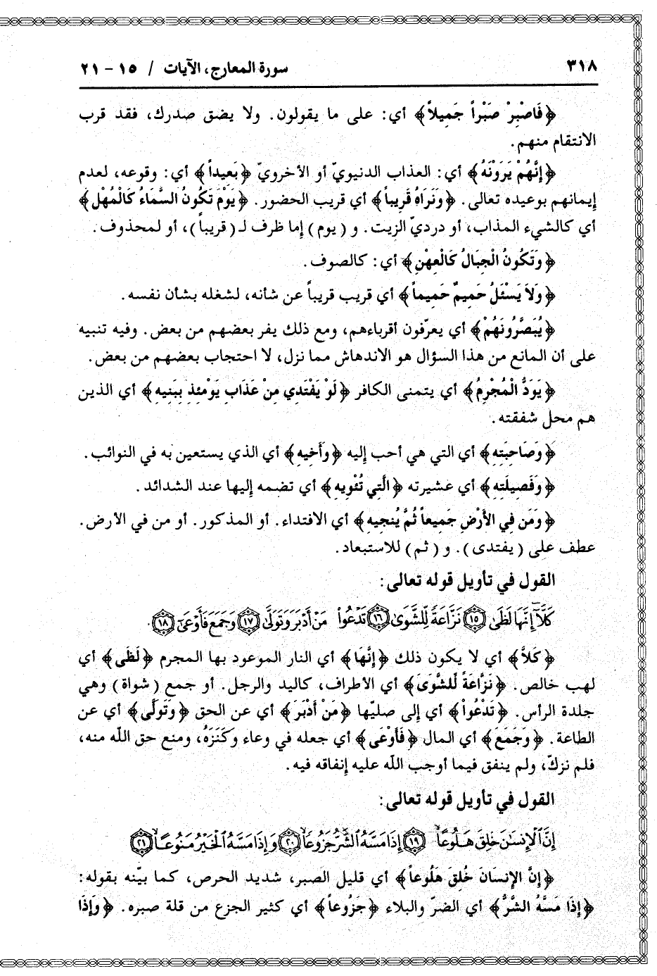 القول في تأويل قوله تعالى: [سورة المعارج (70) : الآيات 15 الى 18]