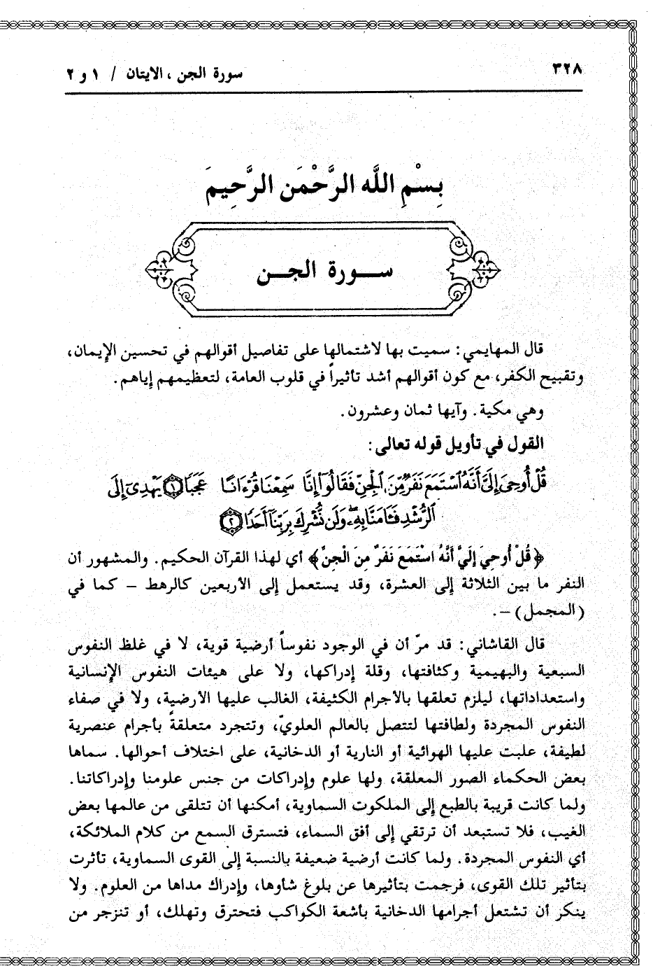 قُلْ أُوحِيَ إِلَيَّ أَنَّهُ اسْتَمَعَ نَفَرٌ مِنَ الْجِنِّ فَقالُوا إِنَّا سَمِعْنا قُرْآناً عَجَباً (1) يَهْدِي إِلَى الرُّشْدِ فَآمَنَّا بِهِ وَلَنْ نُشْرِكَ بِرَبِّنا أَحَداً (2)