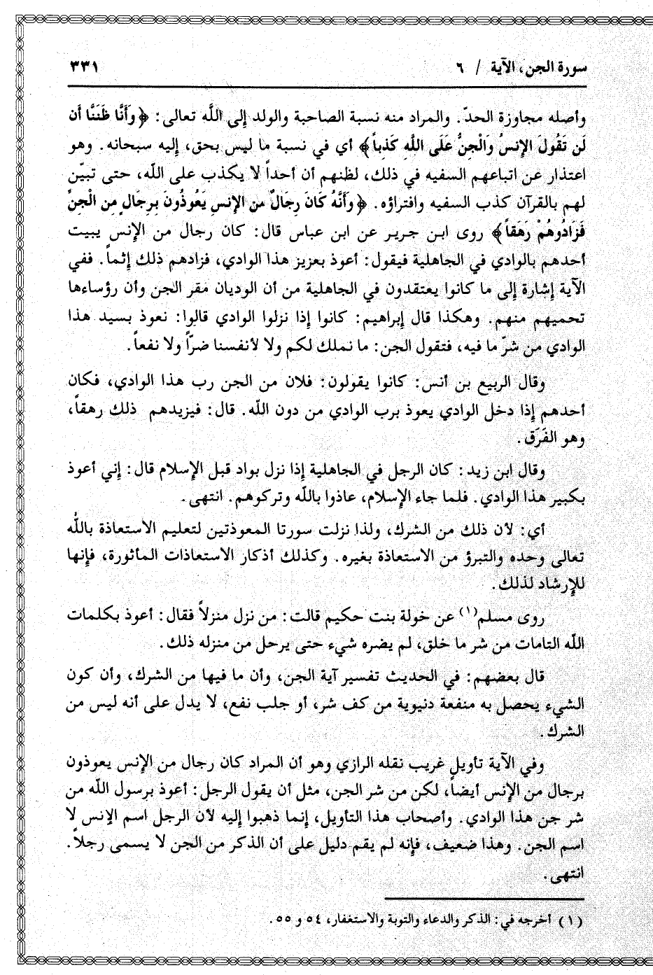 وقال ابن زيد: كان الرجل في الجاهلية إذا نزل بواد قبل الإسلام قال: إني أعوذ بكبير هذا الوادي. فلما جاء الإسلام، عاذوا بالله وتركوهم. انتهى.