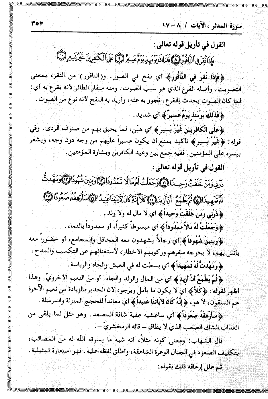 القول في تأويل قوله تعالى: [سورة المدثر (74) : الآيات 8 الى 10]