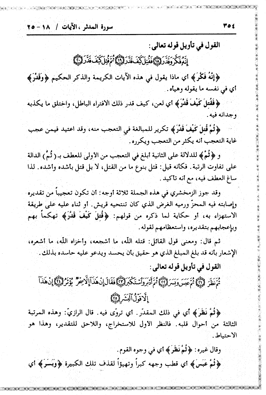 إِنَّهُ فَكَّرَ وَقَدَّرَ (18) فَقُتِلَ كَيْفَ قَدَّرَ (19) ثُمَّ قُتِلَ كَيْفَ قَدَّرَ (20)