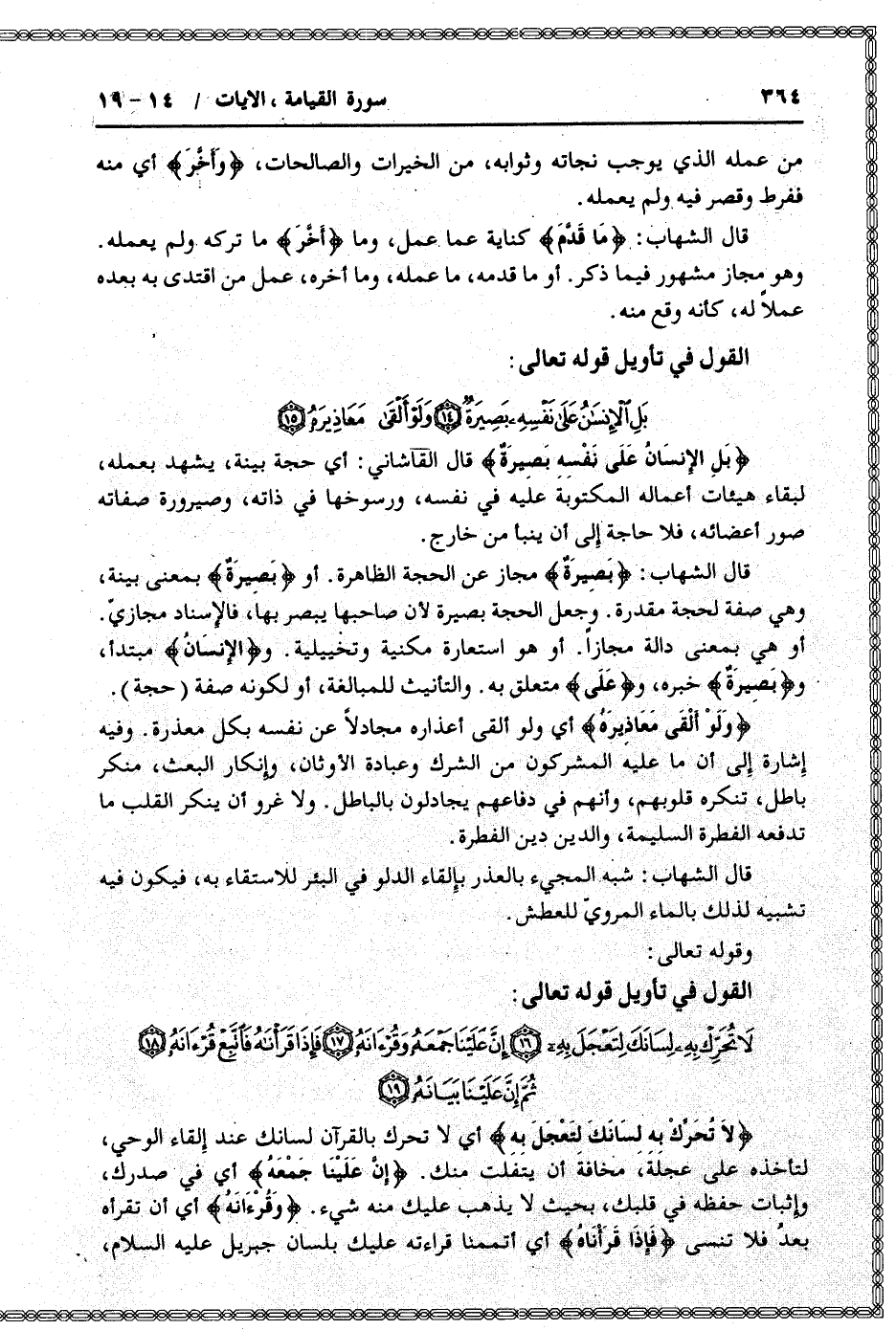 لا تُحَرِّكْ بِهِ لِسانَكَ لِتَعْجَلَ بِهِ (16) إِنَّ عَلَيْنا جَمْعَهُ وَقُرْآنَهُ (17) فَإِذا قَرَأْناهُ فَاتَّبِعْ قُرْآنَهُ (18) ثُمَّ إِنَّ عَلَيْنا بَيانَهُ (19)