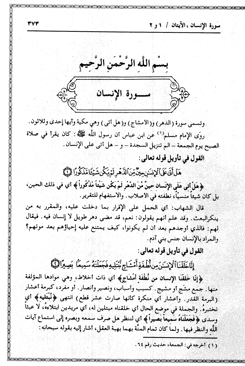 هَلْ أَتى عَلَى الْإِنْسانِ حِينٌ مِنَ الدَّهْرِ لَمْ يَكُنْ شَيْئاً مَذْكُوراً (1)