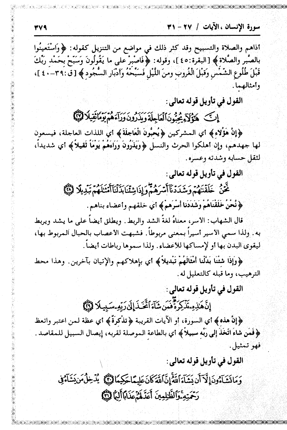 القول في تأويل قوله تعالى: [سورة الإنسان (76) : آية 27]