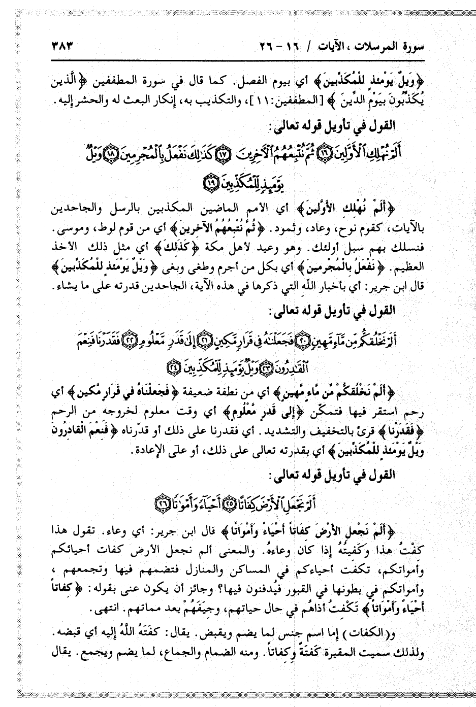 القول في تأويل قوله تعالى: [سورة المرسلات (77) : الآيات 25 الى 26]