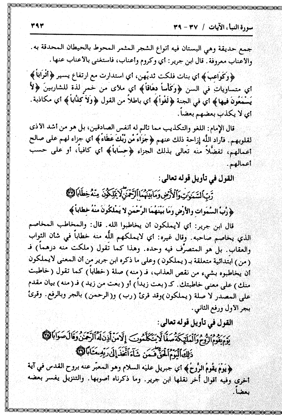 القول في تأويل قوله تعالى: [سورة النبإ (78) : الآيات 38 الى 39]