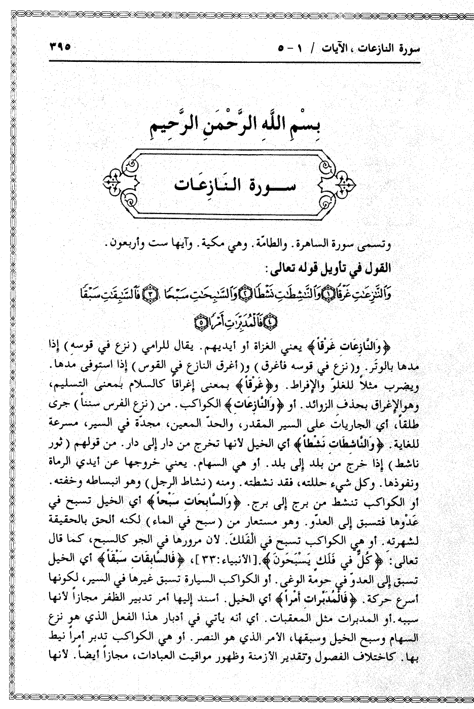 وَالنَّازِعاتِ غَرْقاً (1) وَالنَّاشِطاتِ نَشْطاً (2) وَالسَّابِحاتِ سَبْحاً (3) فَالسَّابِقاتِ سَبْقاً (4)