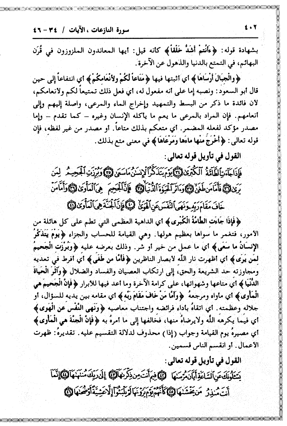 القول في تأويل قوله تعالى: [سورة النازعات (79) : الآيات 34 الى 41]