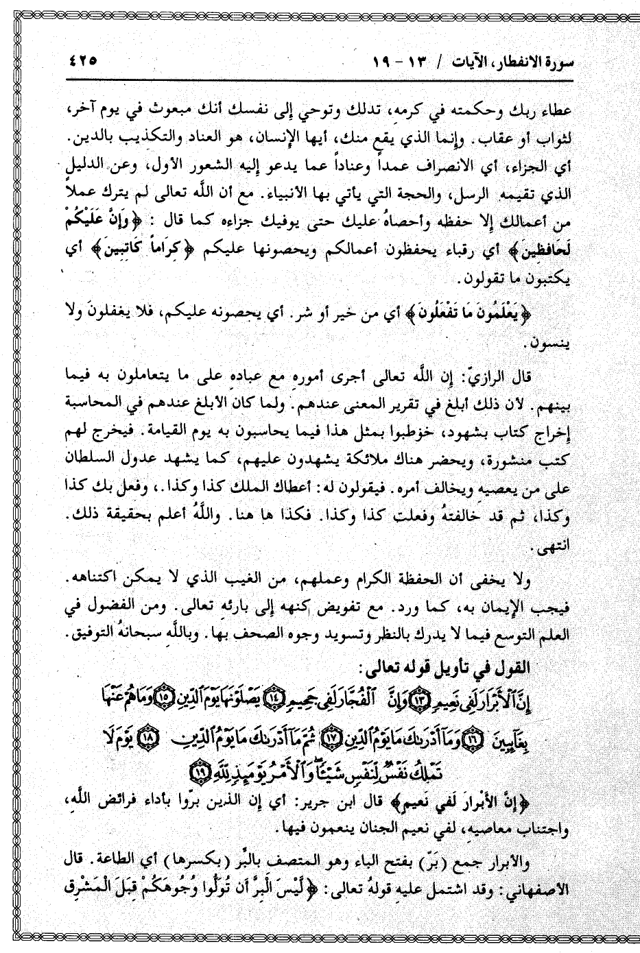 القول في تأويل قوله تعالى: [سورة الانفطار (82) : الآيات 13 الى 19]