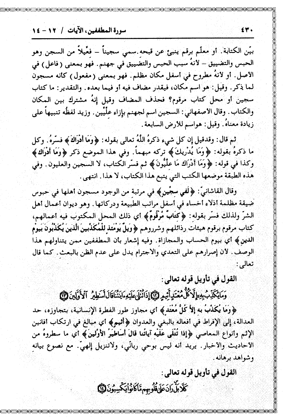 القول في تأويل قوله تعالى: [سورة المطففين (83) : الآيات 12 الى 13]