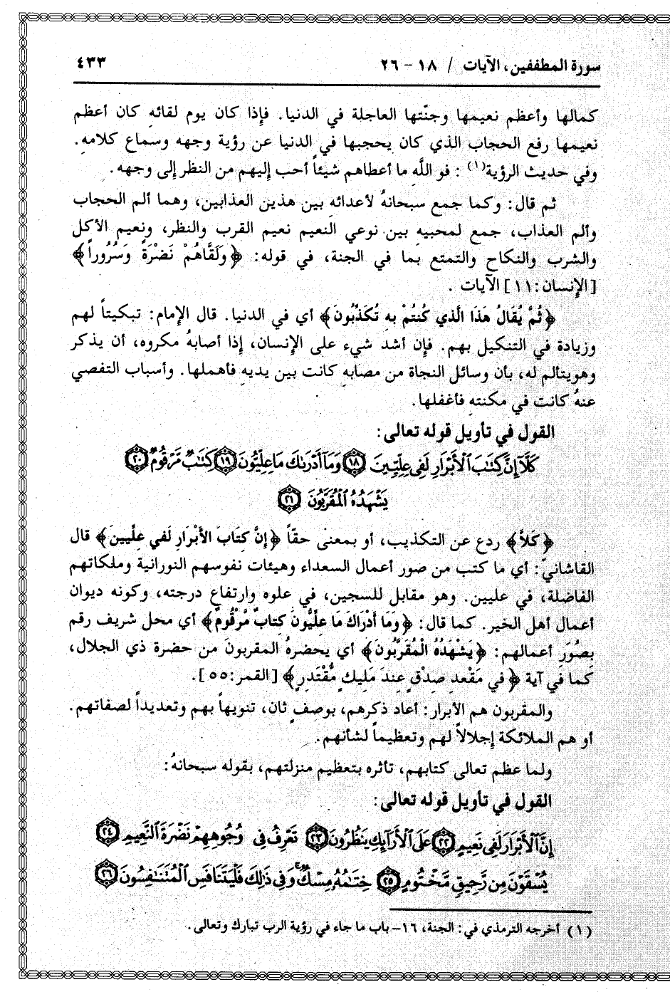 (1) أخرجه الترمذي في: الجنة، 16- باب ما جاء في رؤية الرب تبارك وتعالى.