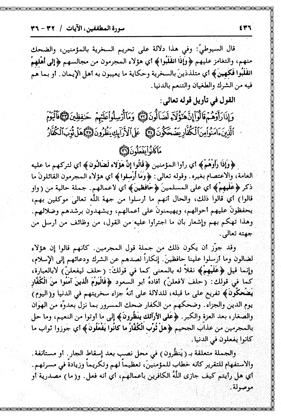 القول في تأويل قوله تعالى: [سورة المطففين (83) : الآيات 32 الى 36]