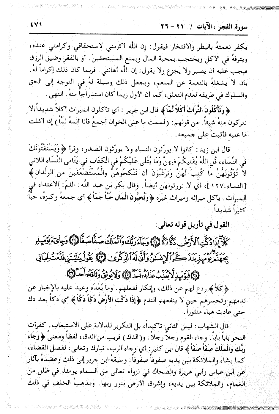 القول في تأويل قوله تعالى: [سورة الفجر (89) : الآيات 21 الى 26]