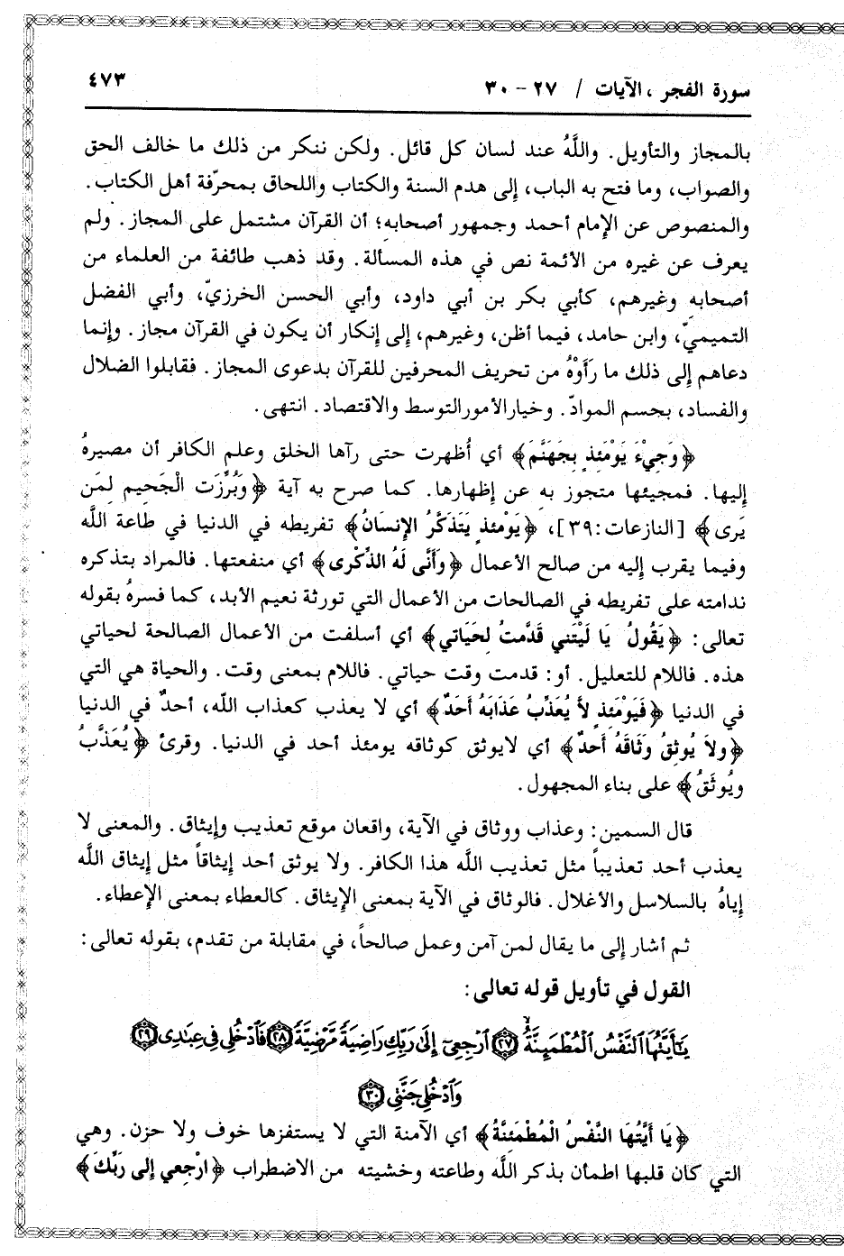 القول في تأويل قوله تعالى: [سورة الفجر (89) : الآيات 27 الى 30]