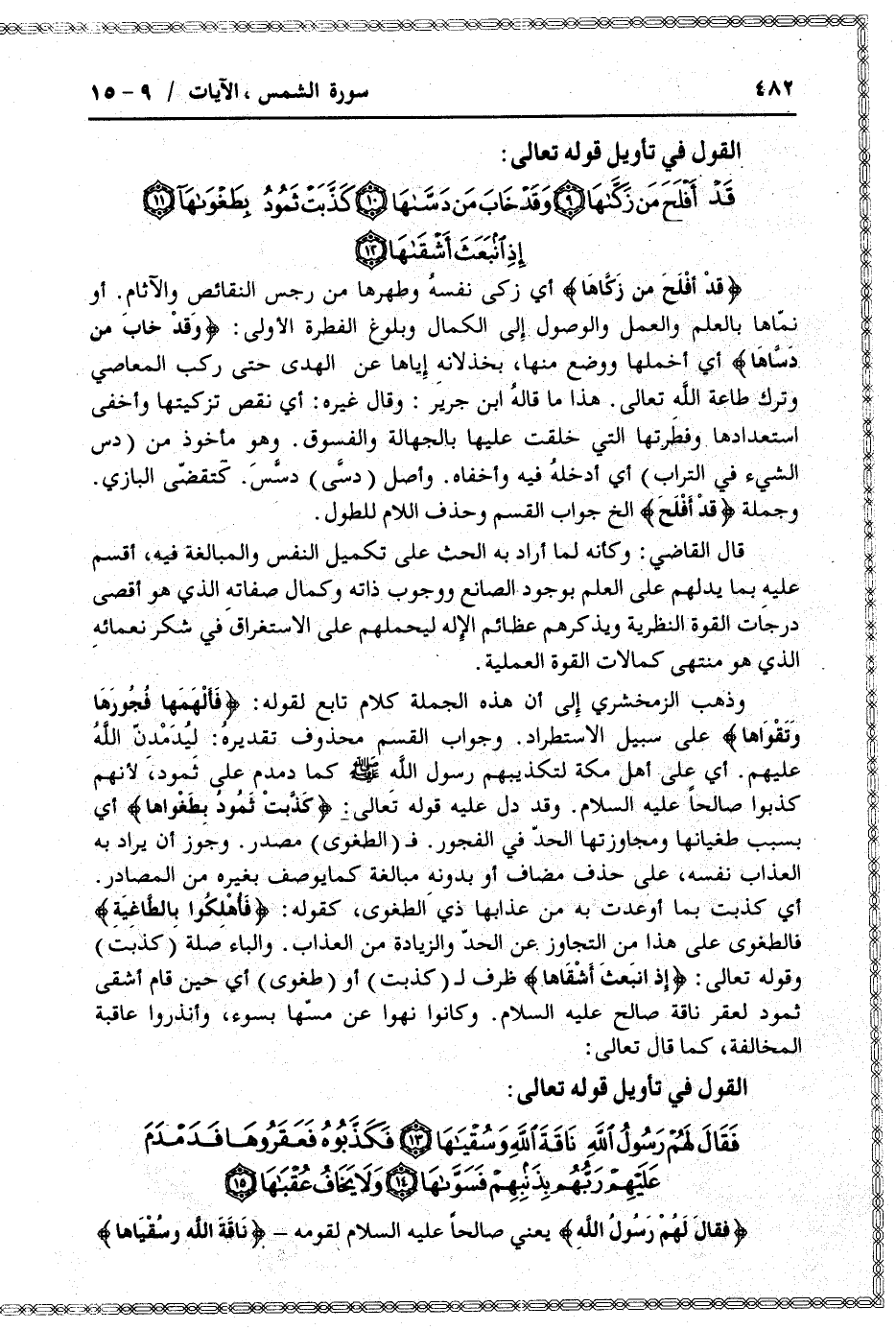 قَدْ أَفْلَحَ مَنْ زَكَّاها (9) وَقَدْ خابَ مَنْ دَسَّاها (10) كَذَّبَتْ ثَمُودُ بِطَغْواها (11) إِذِ انْبَعَثَ أَشْقاها (12)