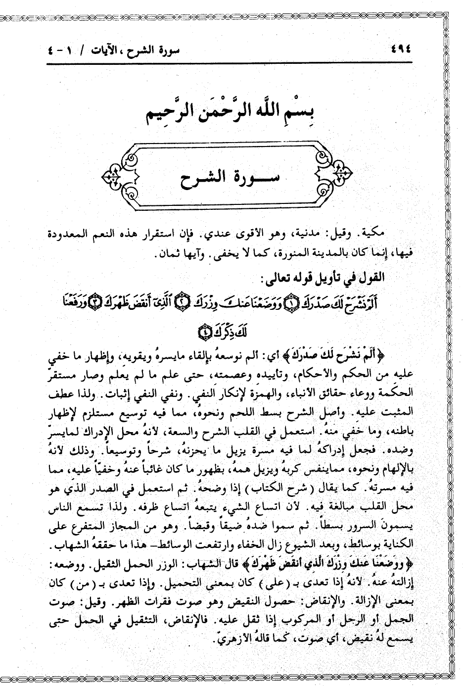 أَلَمْ نَشْرَحْ لَكَ صَدْرَكَ (1) وَوَضَعْنا عَنْكَ وِزْرَكَ (2) الَّذِي أَنْقَضَ ظَهْرَكَ (3) وَرَفَعْنا لَكَ ذِكْرَكَ (4)