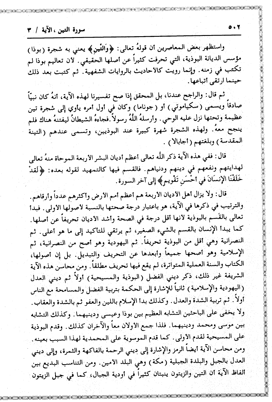واستظهر بعض المعاصرين أن قوله تعالى: وَالتِّينِ يعني به شجرة (بوذا) مؤسس الديانة البوذية، التي تحرفت كثيرا عن أصلها الحقيقي. لأن تعاليم بوذا لم تكتب في زمنه. وإنما رويت كالأحاديث بالروايات الشفهية. ثم كتبت بعد ذلك حينما ارتقى أتباعها.