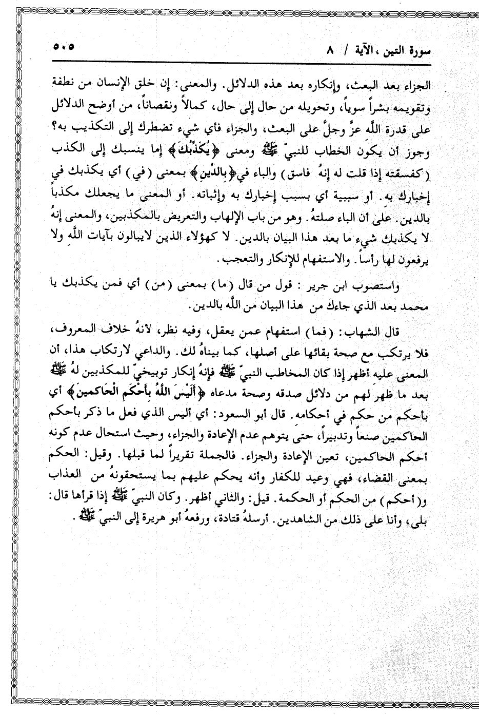 وكان النبيّ صلى الله عليه وسلم إذا قرأها قال: