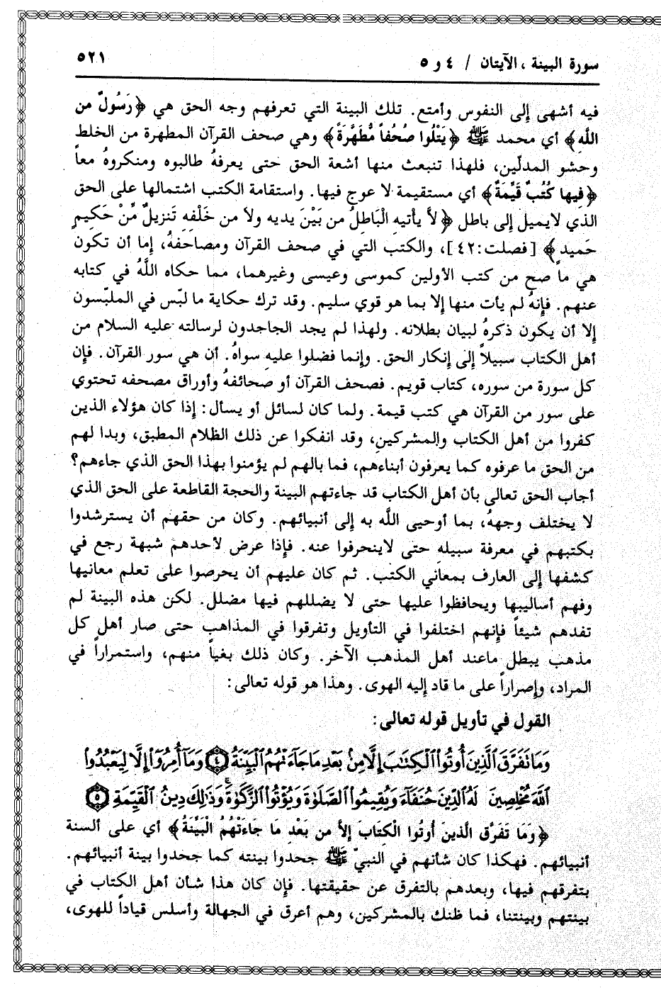 القول في تأويل قوله تعالى: [سورة البينة (98) : الآيات 4 الى 5]