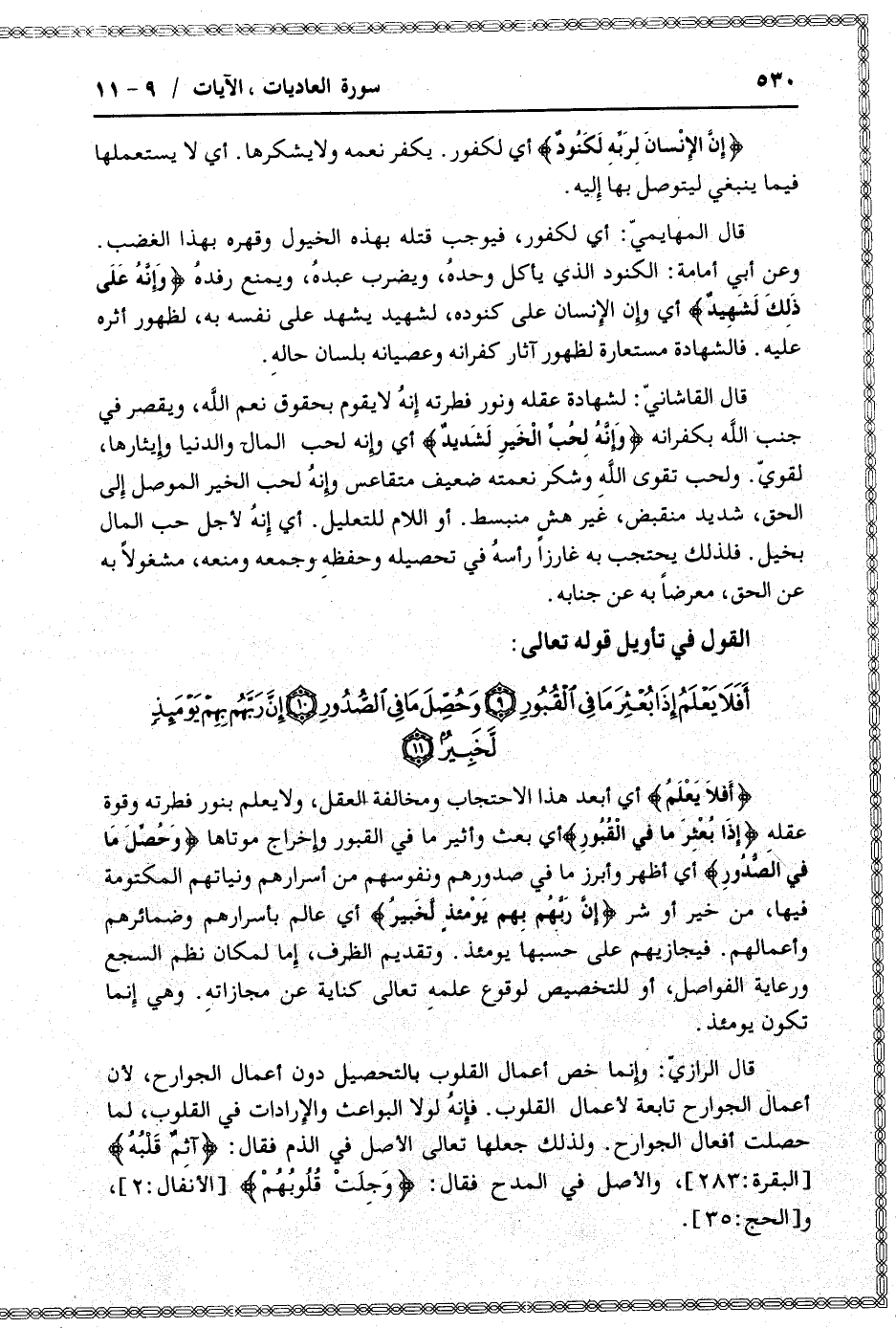 أَفَلا يَعْلَمُ إِذا بُعْثِرَ ما فِي الْقُبُورِ (9) وَحُصِّلَ ما فِي الصُّدُورِ (10) إِنَّ رَبَّهُمْ بِهِمْ يَوْمَئِذٍ لَخَبِيرٌ (11)