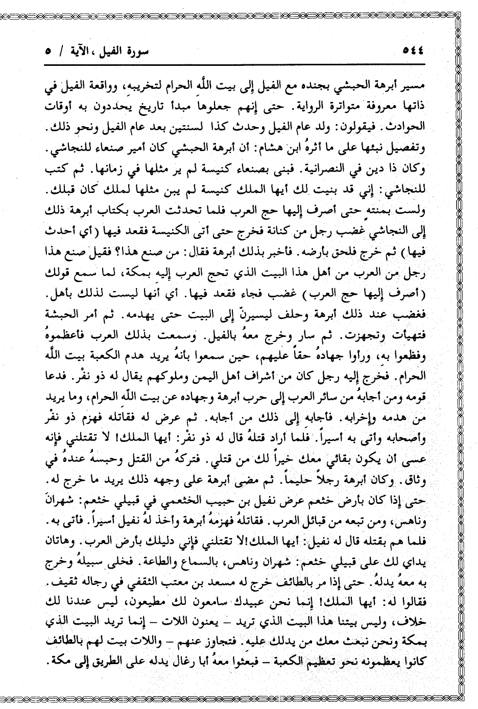 ولست بمنته حتى أصرف إليها حج العرب فلما تحدثت العرب بكتاب أبرهة ذلك إلى النجاشي غضب رجل من كنانة فخرج حتى أتى الكنيسة فقعد فيها (أي أحدث فيها) ثم خرج فلحق بأرضه. فأخبر بذلك أبرهة فقال: من صنع هذا؟ فقيل صنع هذا رجل من العرب من أهل هذا البيت الذي تحج العرب إليه بمكة، لما سمع قولك (أصرف إليها حج العرب) غضب فجاء فقعد فيها. أي أنها ليست لذلك بأهل.
