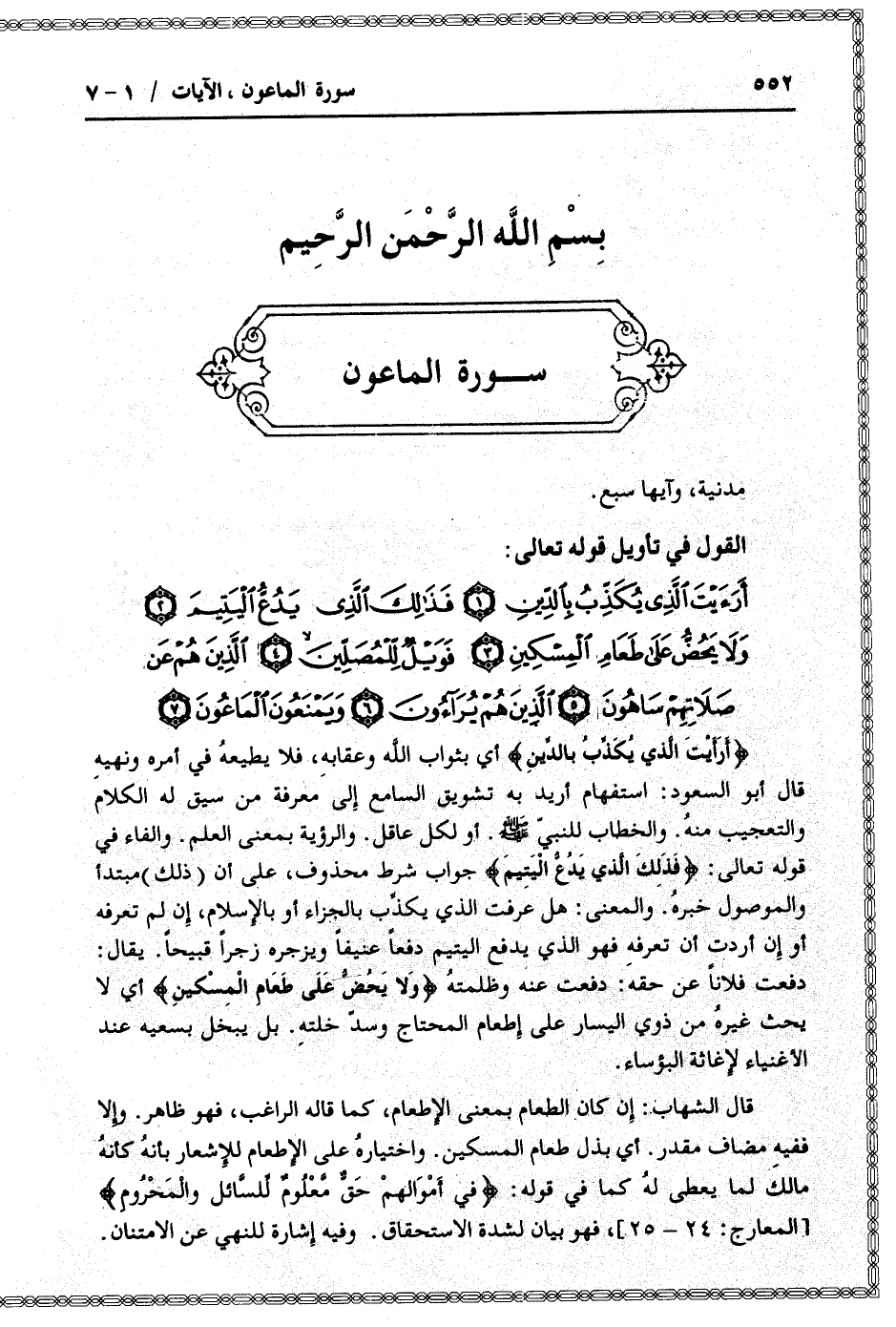 القول في تأويل قوله تعالى: [سورة الماعون (107) : الآيات 1 الى 7]