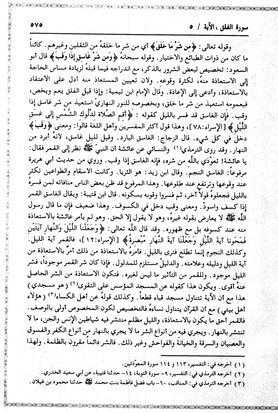 (1) أخرجه في: التفسير، 113 و 114 سورة المعوّذتين.