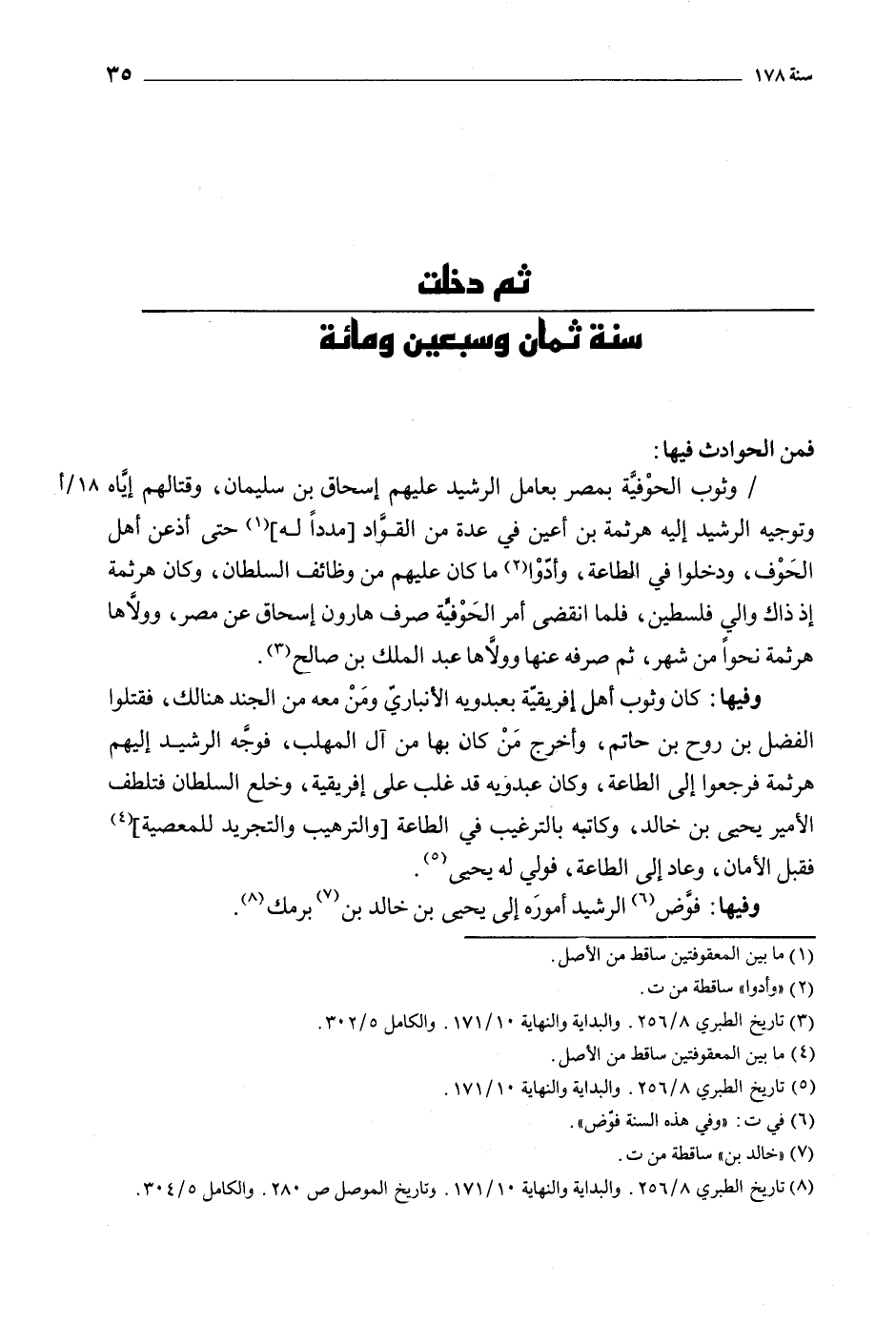 [5] تاريخ الطبري 8/ 256. والبداية والنهاية 10/ 171.