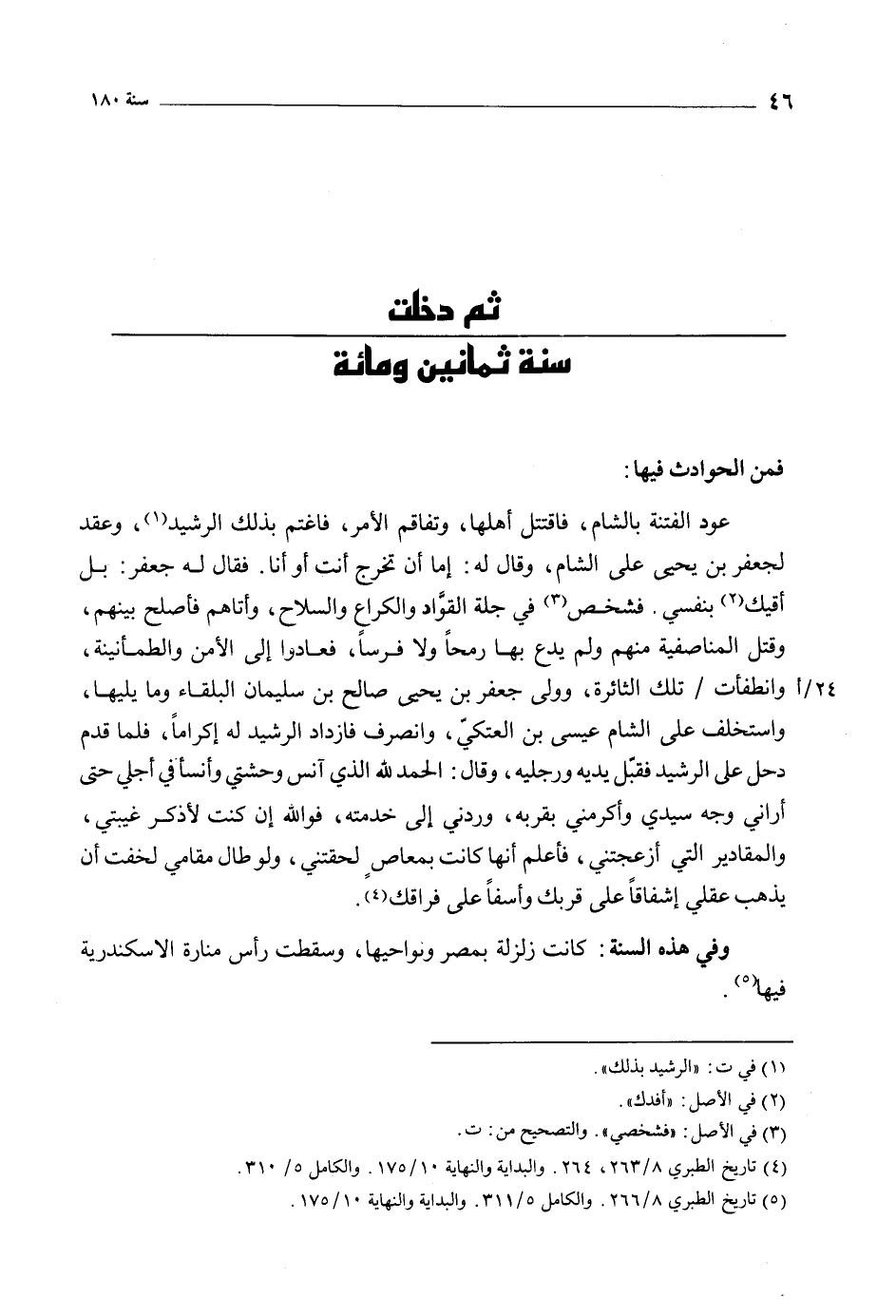 [5] تاريخ الطبري 8/ 266. والكامل 5/ 311. والبداية والنهاية 10/ 175.