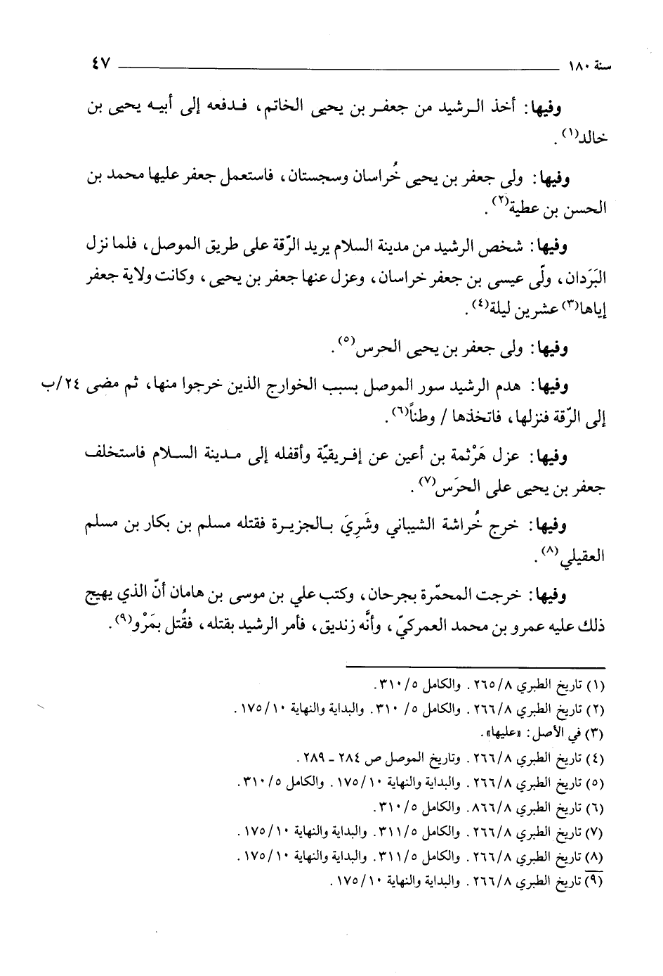 وفيها: ولى جعفر بن يحيى الحرس [5] .