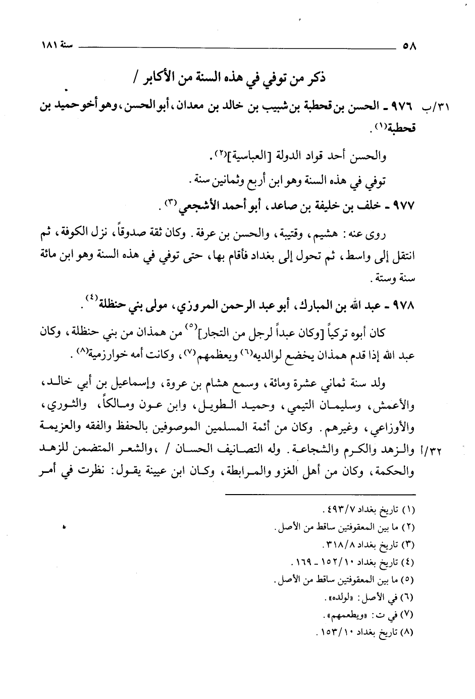 978- عبد الله بن المبارك، أبو عبد الرحمن المروزي، مولى بني حنظلة
