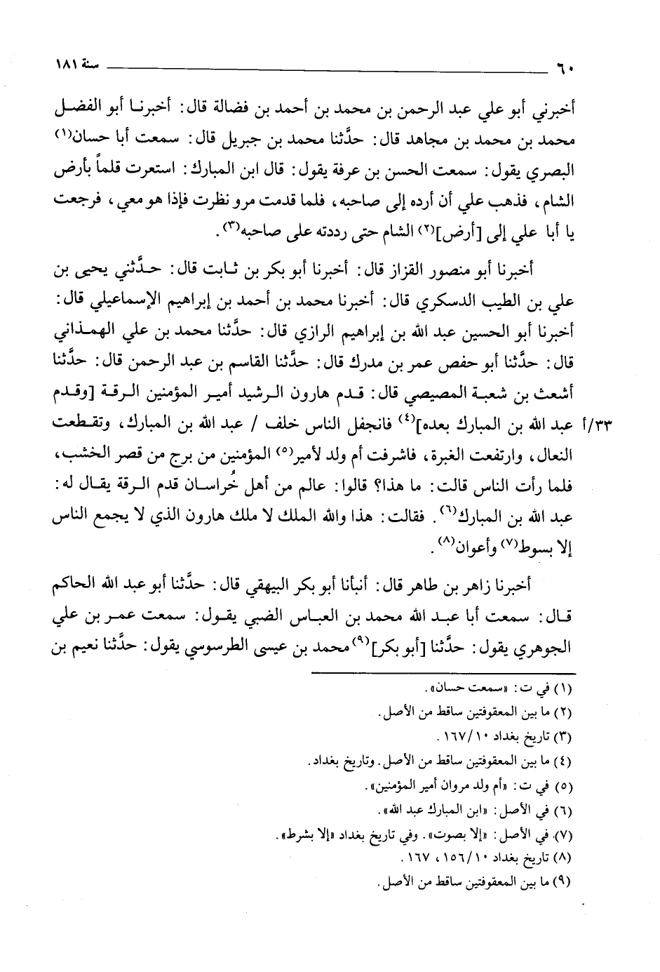 [4] ما بين المعقوفتين ساقط من الأصل. وتاريخ بغداد.