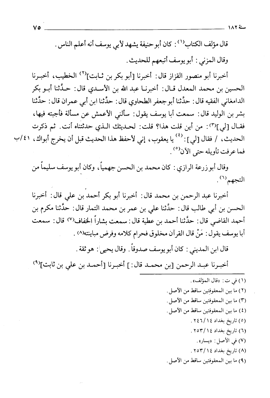 قال مؤلف الكتاب [1] : كان أبو حنيفة يشهد لأبي يوسف أنه أعلم الناس.