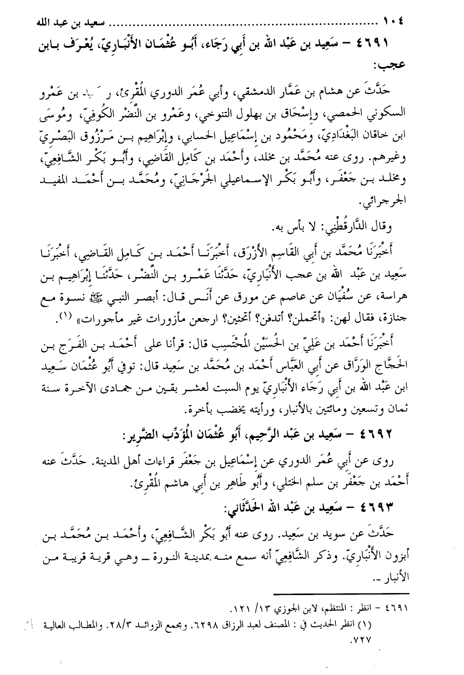 4691- سعيد بن عبد الله بن أبي رجاء، أبو عثمان الأنباري، يعرف بابن عجب [1] :