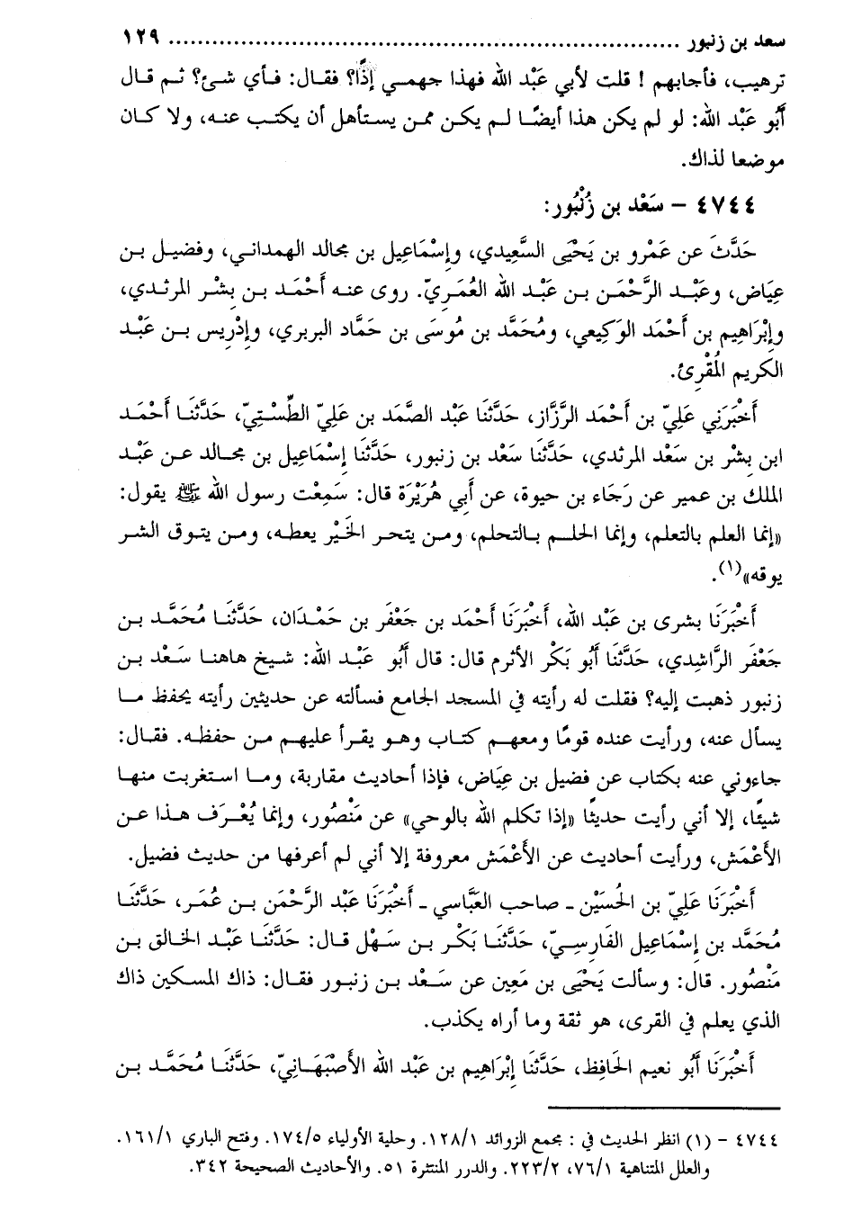 [1] 4744- انظر الحديث في: مجمع الزوائد 1/128. وحلية الأولياء 5/174. وفتح الباري 1/161.