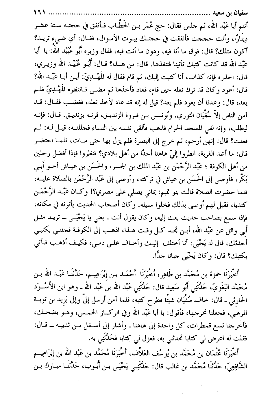 أنتم أبا عبد الله، ثم جلس فقال: حج عمر بن الخطاب فأنفق في حجته ستة عشر دينارا، وأنت حججت فأنفقت في حجتك بيوت الأموال، فقال: أي شيء تريد؟