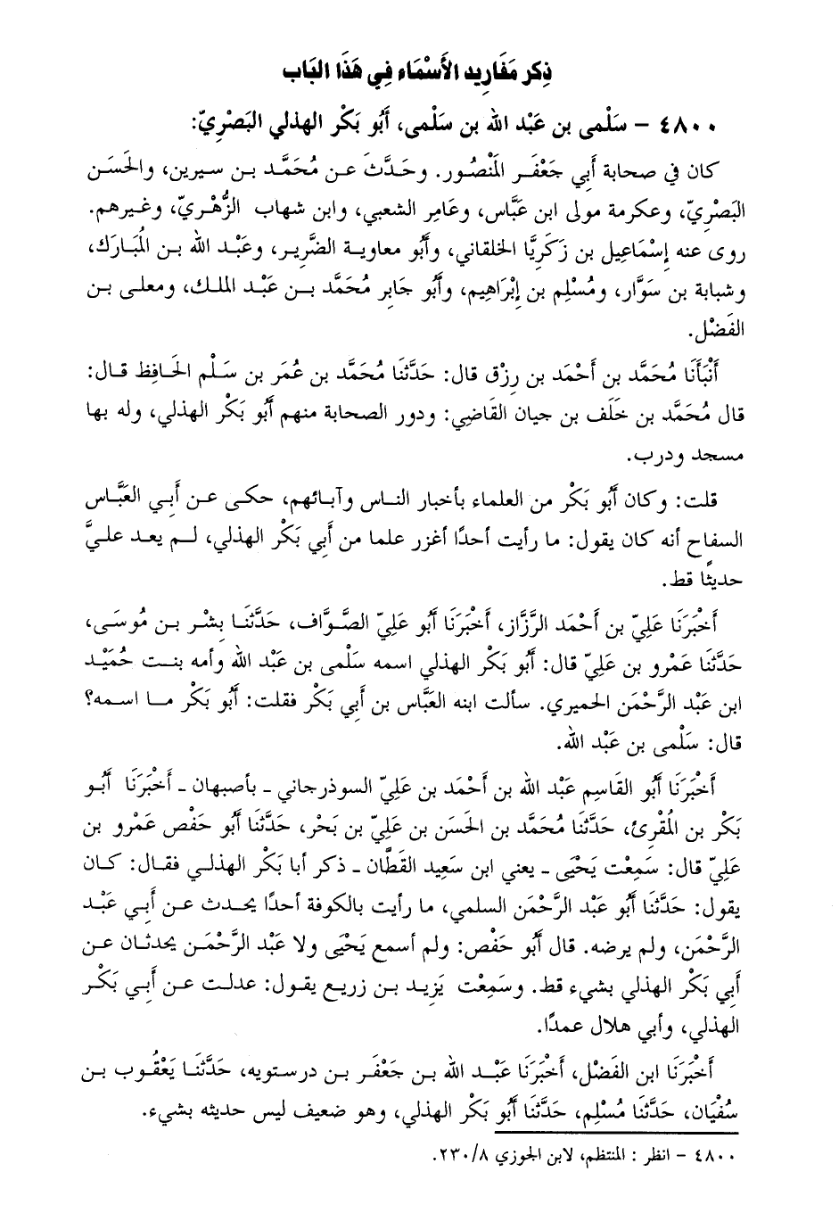 4800- سُلمى بن عبد الله بن سُلمى، أبو بكر الهذلي البصري [1] :