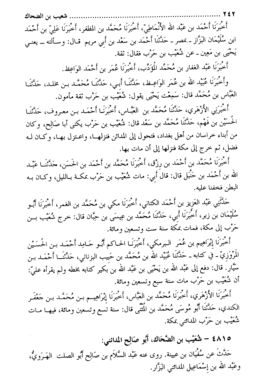 4815- شعيب بن الضحاك، أبو صالح المدائني: