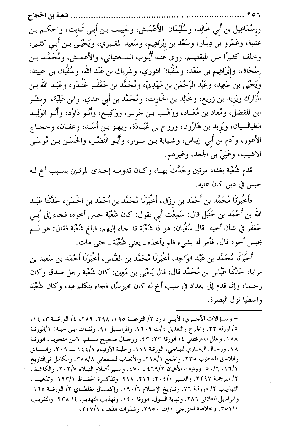 أَخْبَرَنَا محمد بن عبد الواحد، أخبرنا محمد بن العبّاس، أخبرنا أحمد بن سعيد بن مرابا، حَدَّثَنَا عباس بن مُحَمَّد قَالَ: قَالَ يَحْيَى بن معين: كان شعبة رجل صدق وكان رحيما، وإنما قدم إلى بغداد في سبب أخ له كان محبوسا، فجاء يتكلم فيه، وكان شعبة واسطيا نزل البصرة.