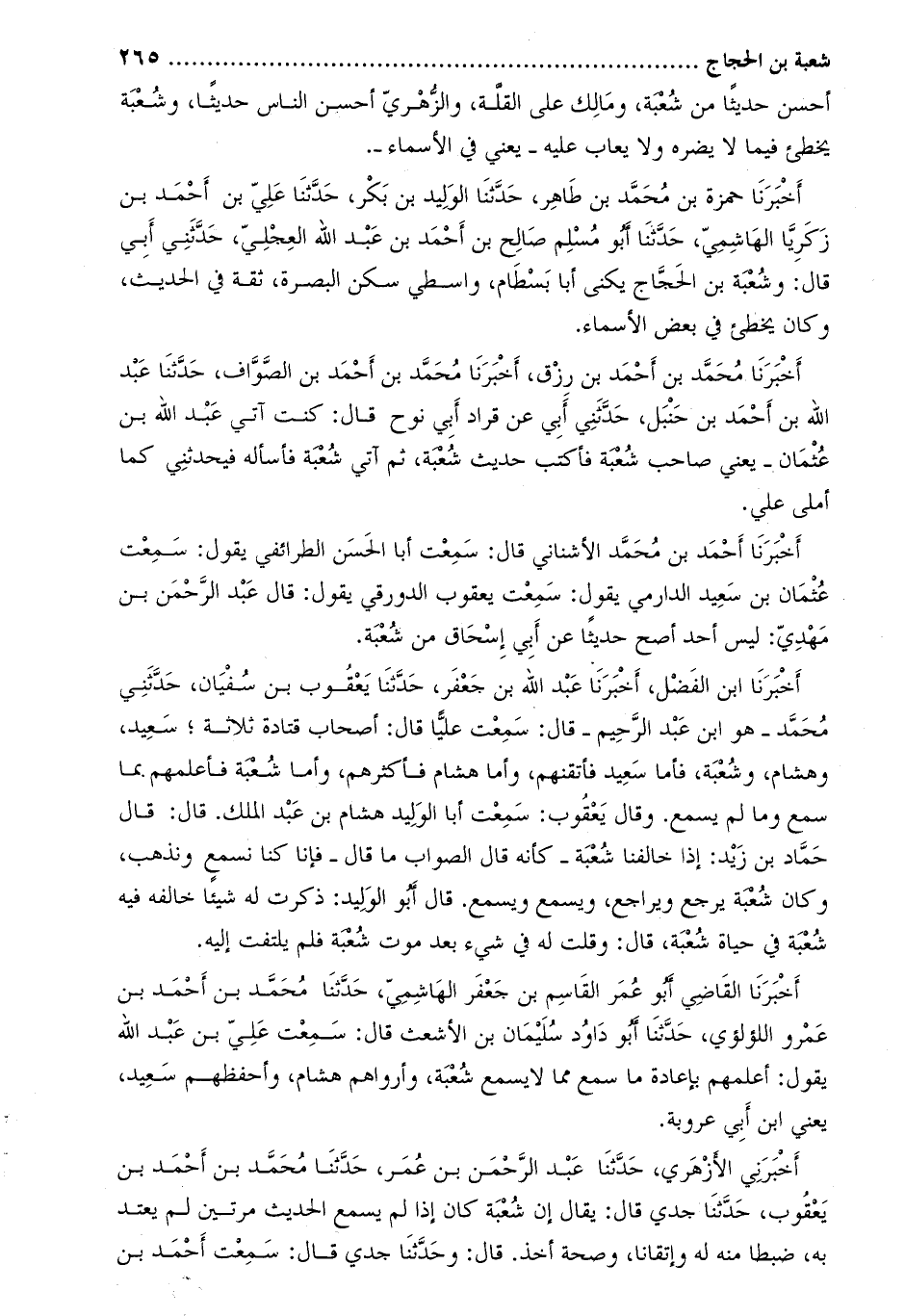 أَخْبَرَنِي الأزهري، حدّثنا عبد الرّحمن بن عمر، حدّثنا محمّد بن أحمد بن يعقوب، حَدَّثَنَا جدي قال: يقال إن شعبة كان إذا لم يسمع الحديث مرتين لم يعتد به، ضبطا منه له وإتقانا، وصحة أخذ. قال: وحَدَّثَنَا جدي قَالَ: سَمِعْتُ أَحْمَد بْن