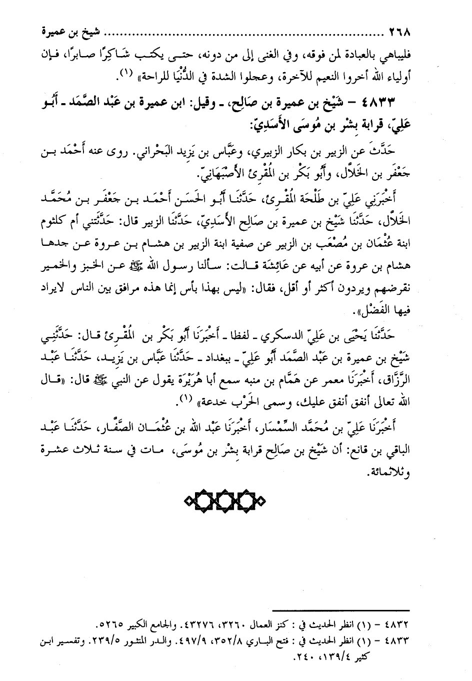 . 4833- شيخ بن عميرة بن صالح، - وقيل: ابن عميرة بن عبد الصمد- أبو علي، قرابة بشر بن موسى الأسدي: