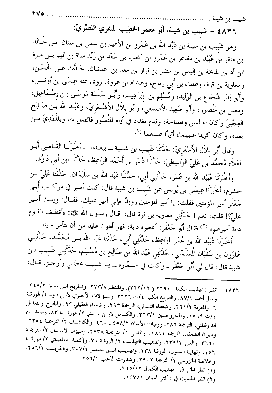 [1] 4836- انظر: تهذيب الكمال 2691 (12/362) . والمنتظم 8/273. وتاريخ ابن معين 2/248.