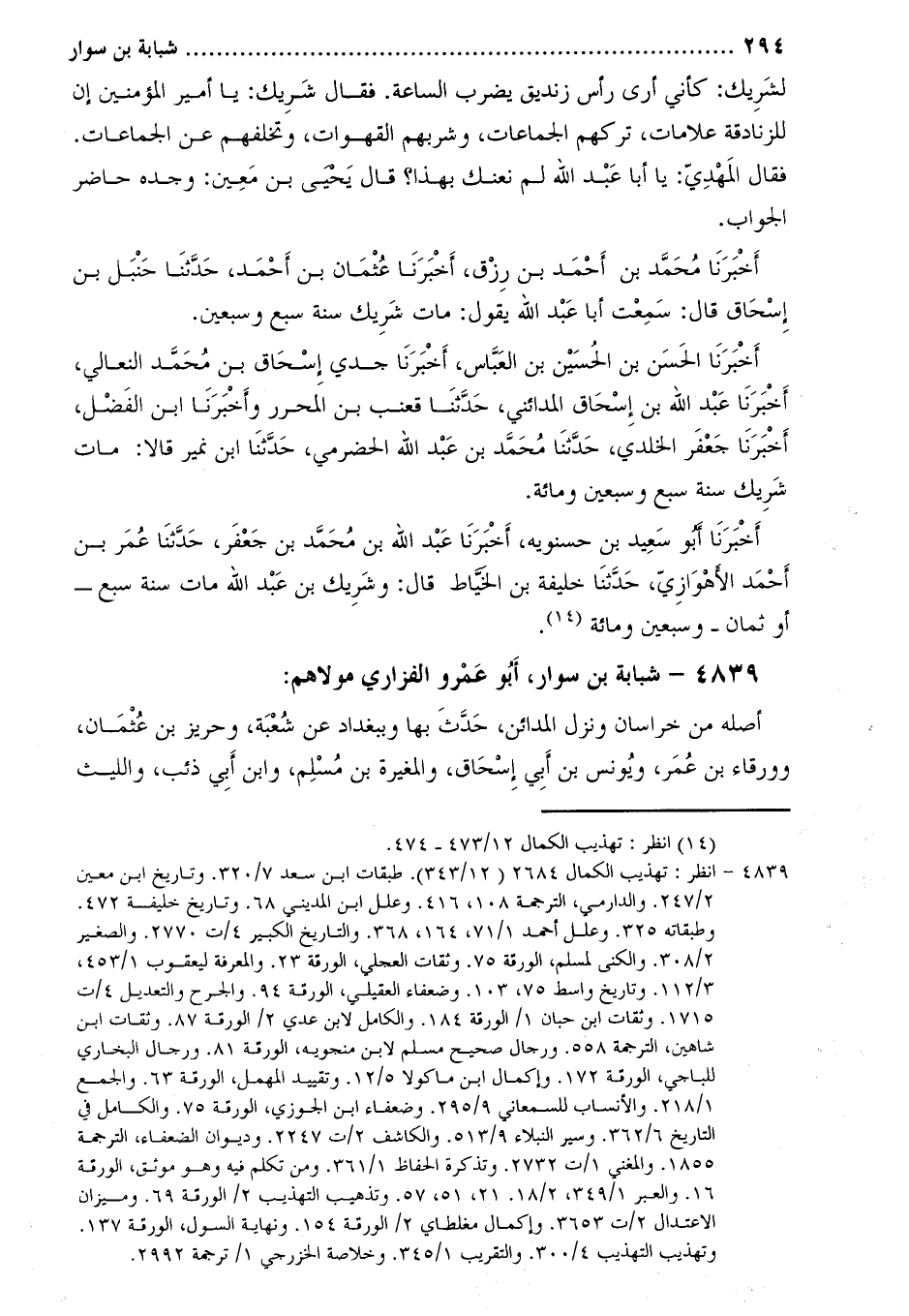 [2] 4839- انظر: تهذيب الكمال 2684 (12/343) . طبقات ابن سعد 7/320. وتاريخ ابن معين 2/247. والدارمي، الترجمة 108، 416. وعلل ابن المديني 68. وتاريخ خليفة 472.