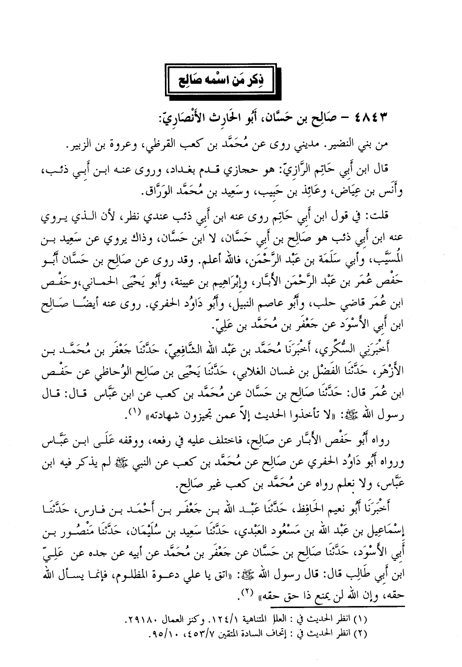 4843- صالح بن حسان، أبو الحارث الأنصاري: