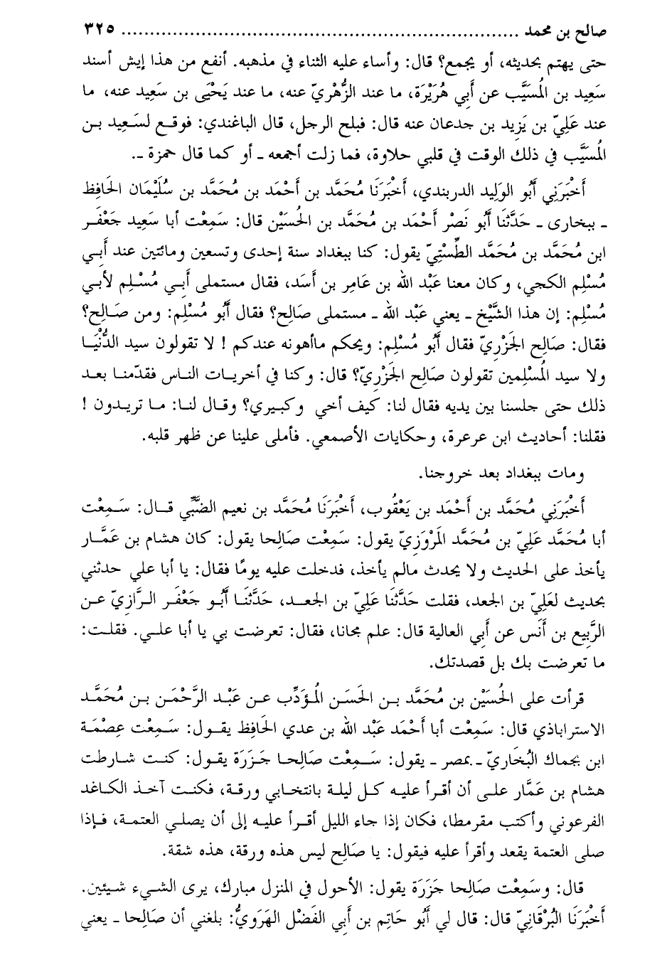أَخْبَرَنَا البرقاني قال: قال لي أبو حاتم بن أبي الفضل الهروي: بلغني أن صالحا- يعني
