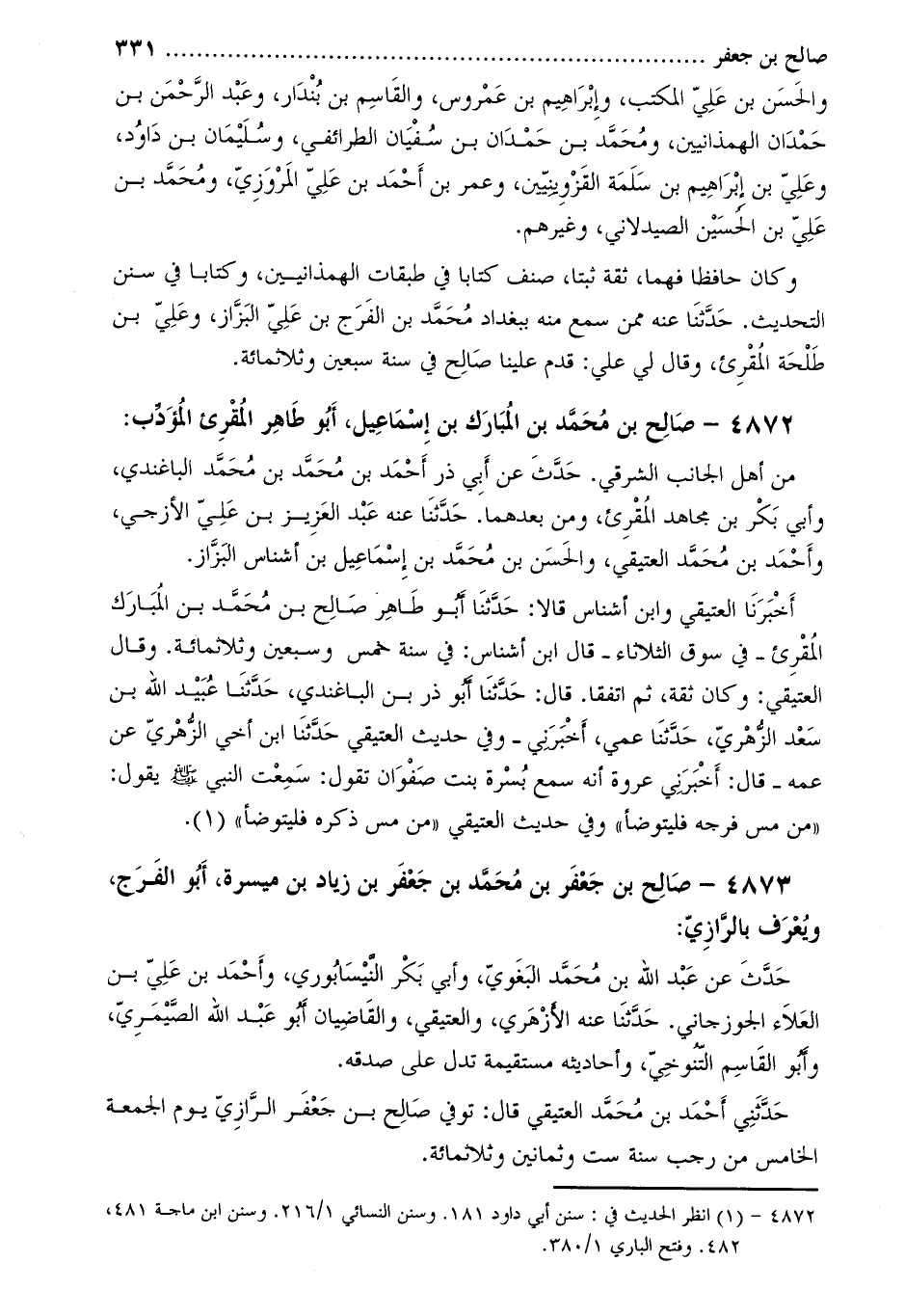 . 4873- صالح بن جَعْفَر بن مُحَمَّدِ بْنِ جَعْفَر بن زياد بن ميسرة، أبو الفرج، ويعرف بالرازي: