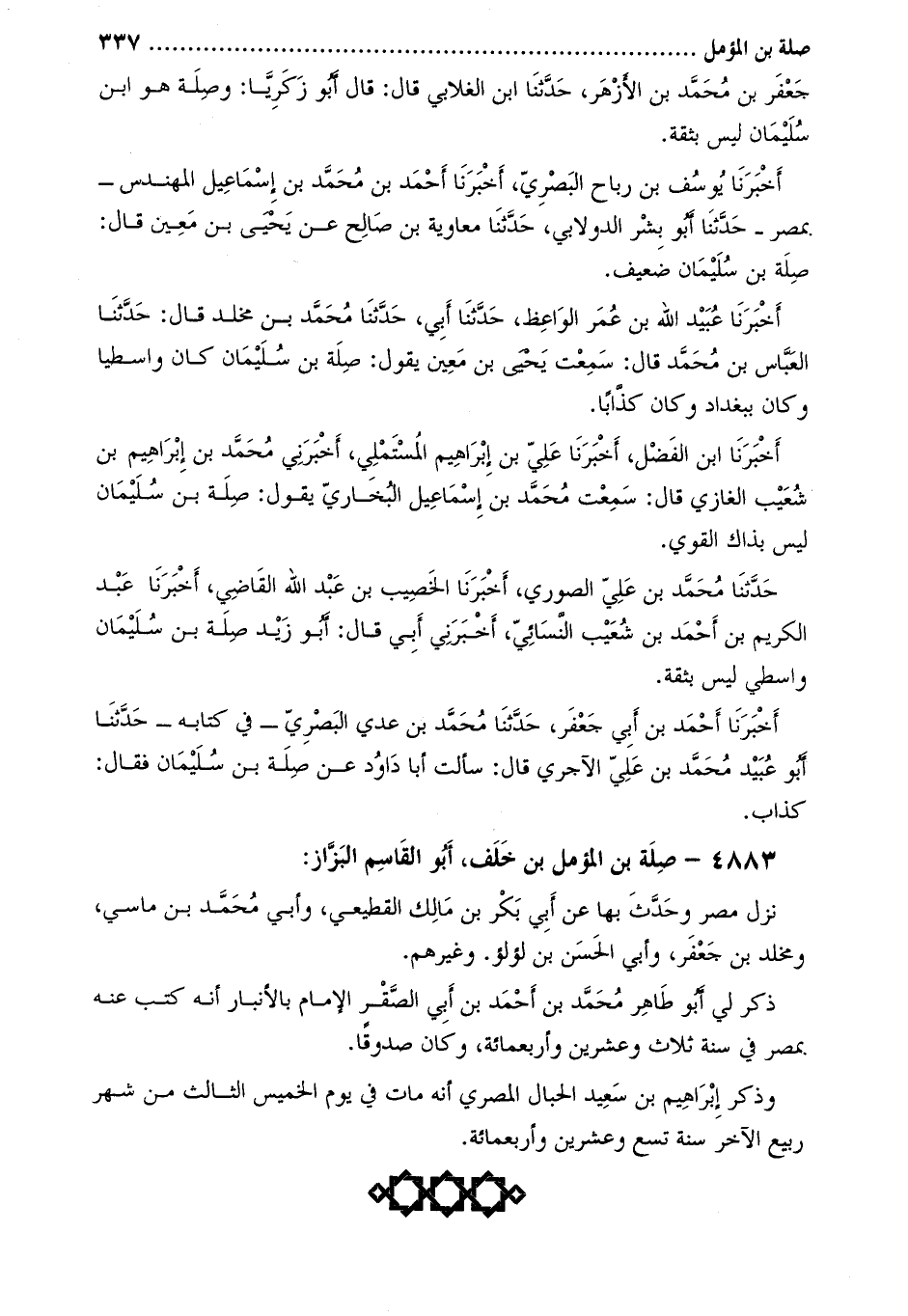 4883- صلة بن المؤمل بن خلف، أبو القاسم البزاز: