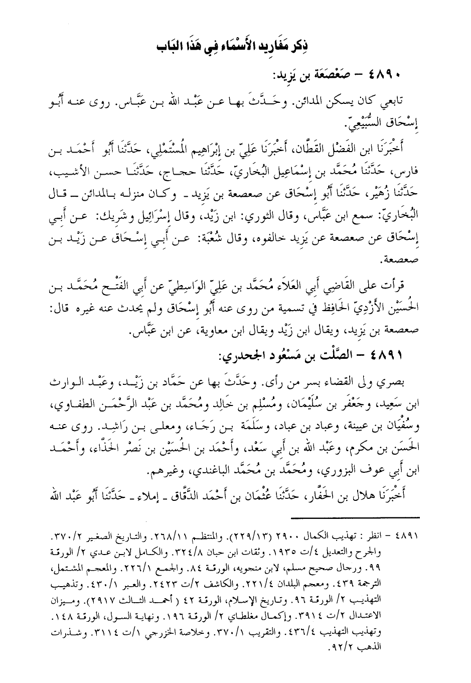 [1] 4891- انظر: تهذيب الكمال 2900 (13/229) . والمنتظم 11/268. والتاريخ الصغير 2/370.